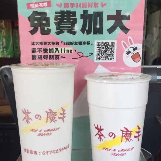 因國際市場通膨影響,廠商不堪負荷,致使888、838加大杯產線停產,自111/09/05(一)起,魔手全台門市將停止供應純茶免費升級加大杯服務。